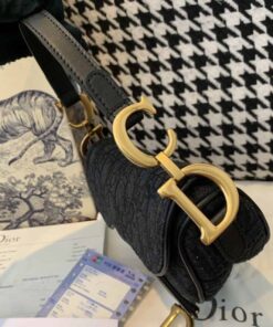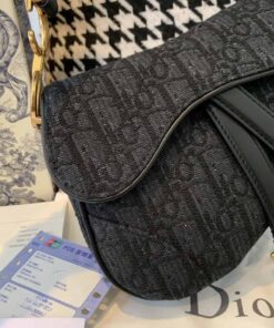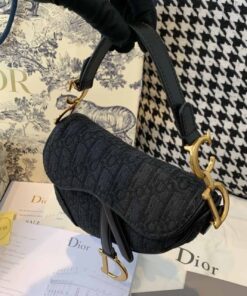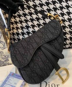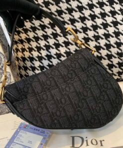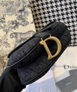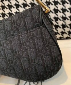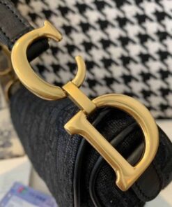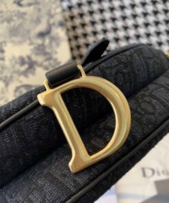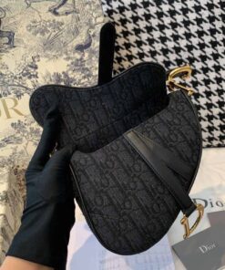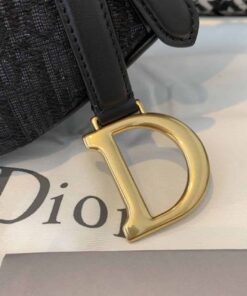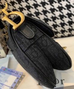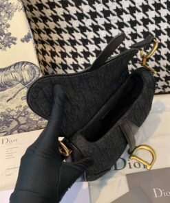 Christian Dior Saddle Bag Black Oblique Embroidered Canvas Gold toned hardware For Women 19.5cm/7.6in CD