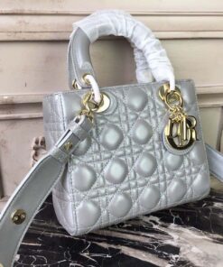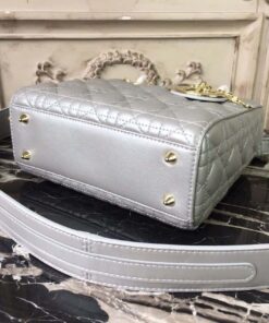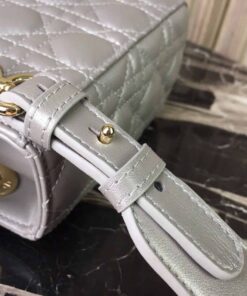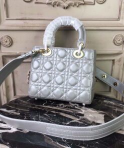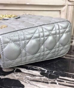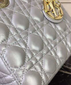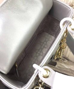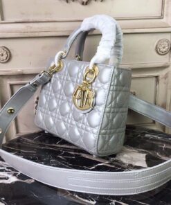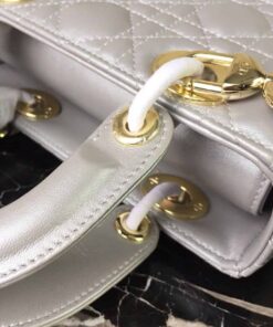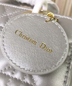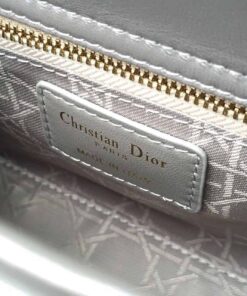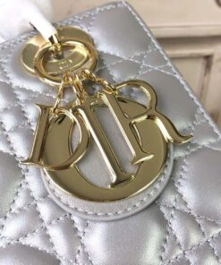 Christian Dior Small Lady Dior Bag Gold toned hardware Silver White For Women 8in/20cm CD