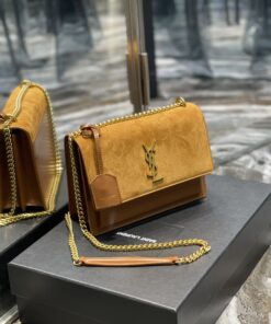 Saint Laurent Sunset Medium Chain Bag Brown For Women 9.8in/22cm YSL